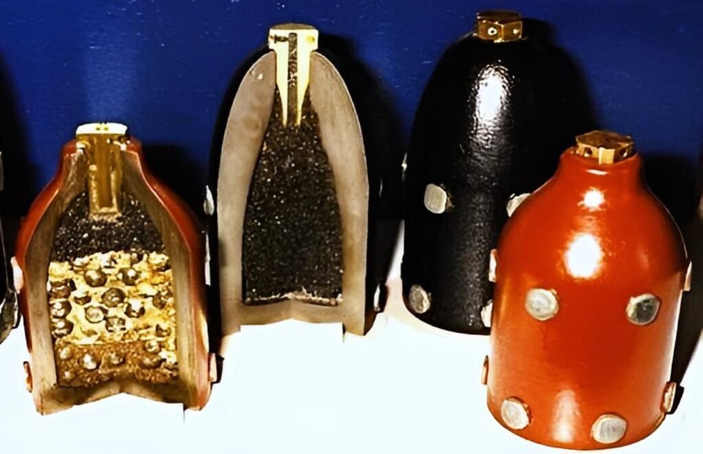 les premiers obus oblongs à tenons (le canon est rayé et l’obus est stabilisé sur la trajectoire par effet gyroscopique)  (1858)