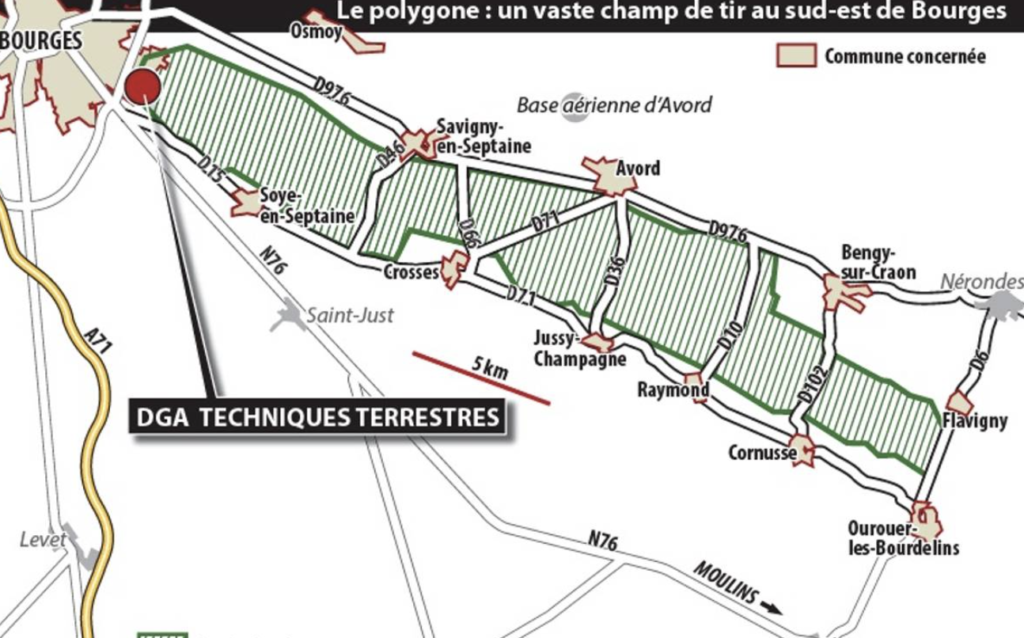 Les dimensions du champ de tir, à l’origine de longueur 3 km, suivent l’accroissement de portée des armes d’artillerie. Le polygone atteint 12 km en 1914, 30 km en 1918.
